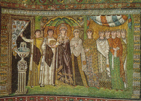 | Teodora y su sequito. Rávena. La Emperatriz Teodora de Bizancio murió como consecuencia de un cáncer de pecho |